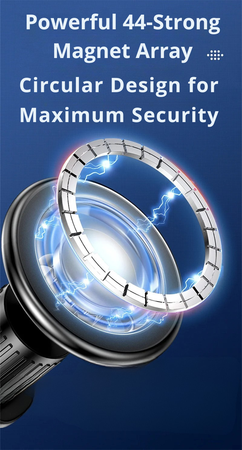 Built with 44 ultra-powerful magnets, it keeps your device stable even on bumpy roads. No more worrying about slipping or falling, no matter how rough the drive.